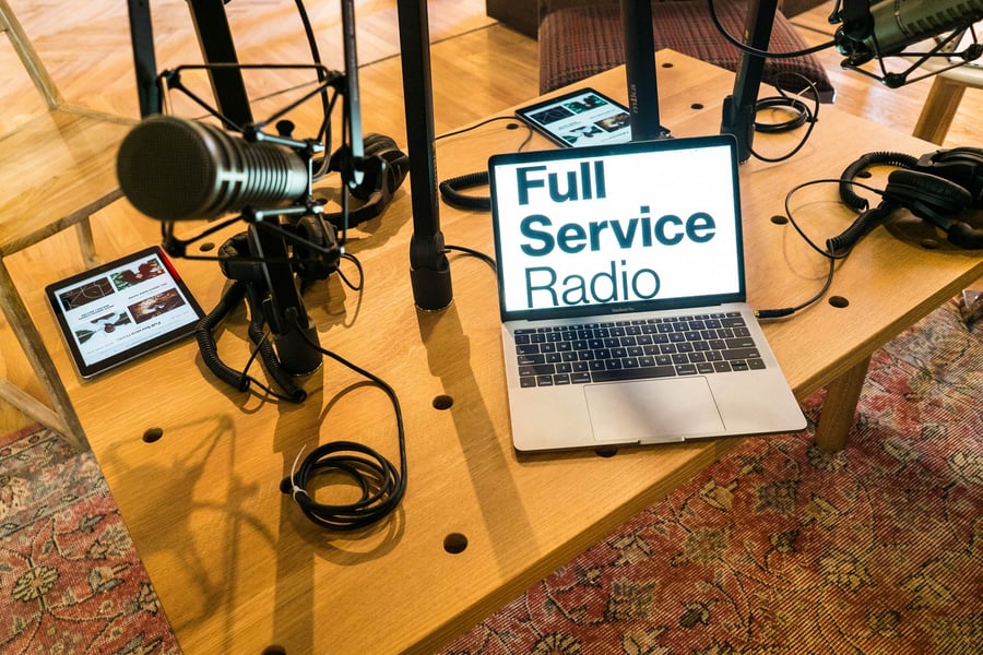 “You can record a podcast anywhere,” says Inslee, whose current set-up for Full Service Radio has his team recording out of The LINE Hotel in Washington, DC (Also worth noting: Inslee’s previous gig at Heritage Radio, which broadcast a food radio station from the back of renowned Brooklyn pizza joint, Roberta’s).
