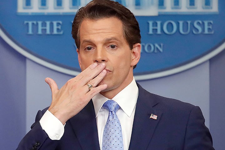 — While speaking of fellow White House spokesperson and new department subordinate Sarah Huckabee Sanders, “Mooch” delivered a line that read like a Mad Men screen test: “Sarah, if you’re watching, I loved the hair and makeup person that we had on Friday.” By the next day he was like a man with a sackful of ants turned over on his head, so many were the news stories denouncing him as sexist.