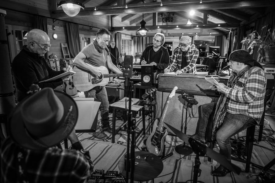 It’s the death of George Theiss, however, that hangs the heaviest here. Theiss was Springsteen’s comrade-in-arms in his first band, the Castiles. The two were inseparable in the mid-’60s, then there were fights and falling-outs, successes and failures, on-again and off-again years — the usual things that mark a 50-year friendship. When Theiss passed away in 2018, Springsteen realized he was not only the most famous Castile, but the only surviving member left. Springsteen recounts all of this in a voice that’s a mix of sentimental last-call philosopher, Jersey Shore Zen master and be-bop-a-lula sage. And whether you love these Tao of Bruce koans or feel a little goes long way with them, the message is the same: Maybe everything that dies never fully comes back. That realization is all over Last Man Standing and Ghosts, two of the album’s strongest and most affecting cuts. But the experience of staring down mortality colors the entire affair here, from the shadow-filled studio corners to snowy winter landscapes — and rendered in such beautifully stark black-and-white images that you think Springsteen and the E Street Band walked straight into an Ansel Adam print, only heightens the mournfulness.