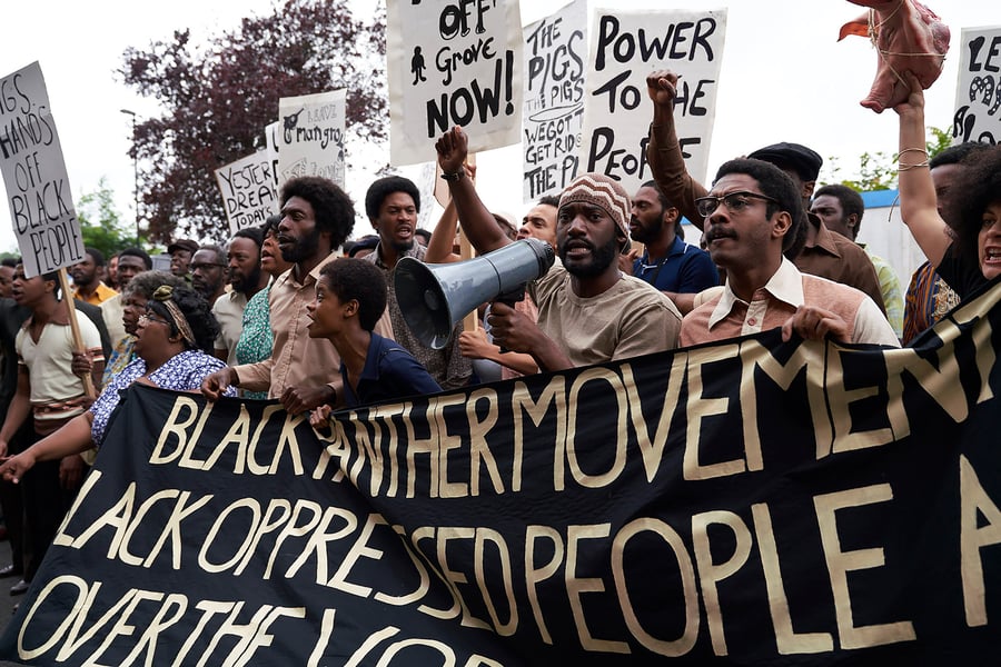 Mangrove is, as this summary implies, a movie that builds up to a trial. Of the so-called Nine, McQueen’s movie is especially interested in Crichlow (an astonishingly conflicted Shaun Parkes); Altheia Jones-LeCointe (Letitia Wright), a biochemist and Black Panther; fellow Panther Darcus Howe (Malachi Kirby); and Howe’s partner, the fearsome activist, educator, and fellow Panther Barbara Beese (Rochenda Sandall).