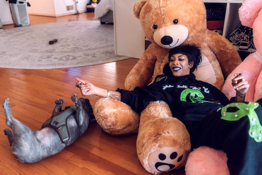 In 2018, she met Kenny Beats, a lanky ex-EDM musician who’s one of today’s most in-demand rap producers. “I’m not trying to be funny when I say this, but I think that rock shit came because I had never worked with a white producer,” she says. “Niggas want to come into my sessions and ask me if I know about hip-hop, so I’m going to ask Kenny if he knows about rock music. And he doesn’t know shit.” Still, Kenny dutifully made an aggressive, guitar-based beat based on her notes. Rico “went out, took some molly, came back, and I made ‘Smack a Bitch’ ” — her most popular song, with more than 58 million streams on Spotify.
