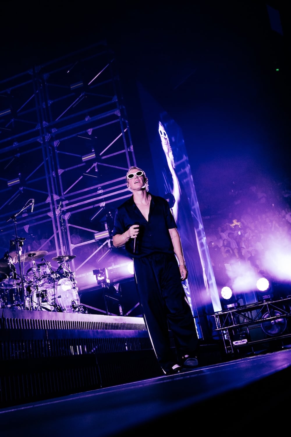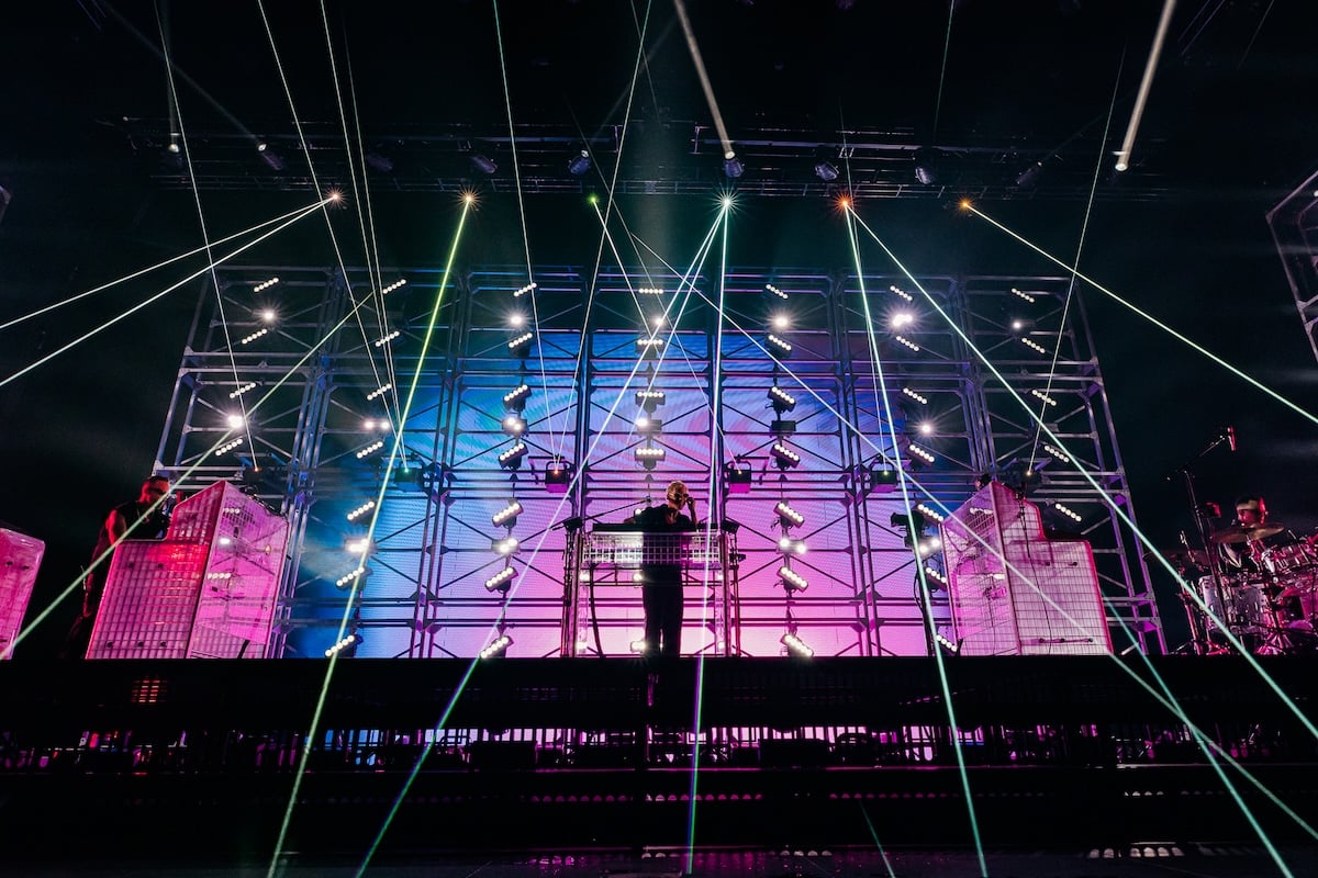 We have her even more as a feature of the show, really running around the stage and focusing on zooming in on the micro, little things that we’re doing. Even in bigger stadiums, I think for people in the crowd, they can actually see that we’re doing a lot of things up there and we make ourselves very busy. There’s a lot of chance for things to fuck up or some controlled chaos, and highlighting that, I think it connects the crowd to us a little more and brings the humanity out and we really like that. I think that’s a really cool progression for us.”