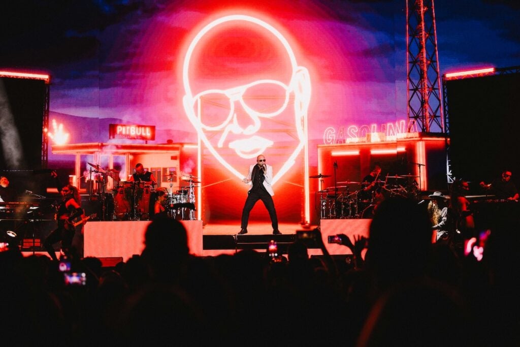 Lil Jon returned for a surprise cameo, the pair trading verses like it was 2011 all over again. “To all the baldies out there,” Pitbull grinned, slapping his head, “you already know. If you got those bald caps on, you’re gonna have the time of your life. Dale!” He then closed with “Fireball” and a triumphant “Timber,” complete with line-dancing cowgirls and golden pyrotechnics.