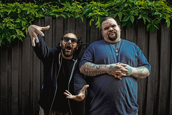 The pair are here to discuss their debut album, the not-coincidentally-titled Reclaim Australia – a record designed to not make the racist comfortable. Sonically it’s a loving homage to the old school hip-hop the pair grew up on, a slamming, brass and Moog-heavy collection that references G-Funk, gangster rap, the Bomb Squad, and the best of Nineties West Coast hip-hop. But the subject matter is much closer to home.