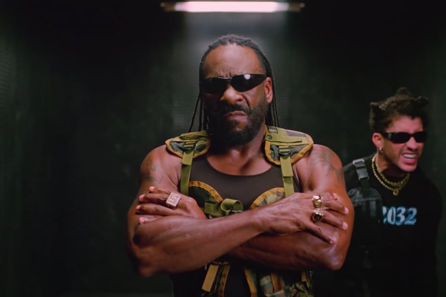 The visual for the track — which features a sample of Booker T’s “Can you dig it sucka?” entrance song from wrestling events — finds Bad Bunny and the former world champion wrestler hunkered down in the storage unit of a truck, driving to parts unknown.