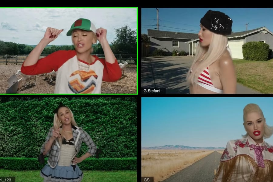 The video opens with Stefani calling Interscope exec Steve Berman to ask for more money for the video shoot, a callback to the singer’s phone call with Jimmy Iovine from her first solo video for “What You Waiting For?” After present-day Stefani sings the first verse, the video shoot is then swarmed with Stefani’s from years past, each representing one of the singer’s iconic looks from her No Doubt and solo years: “Just a Girl” video Gwen, blue-haired Stefani from the 1998 MTV VMAs, “Don’t Speak” video Gwen, Las Vegas residency-era Stefani, “Hollaback Girl” Stefani, etc.