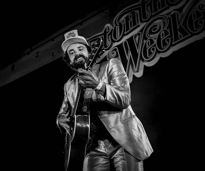 Josh Headley‘s suit shimmers under the stage lights, sky blue and sequined, slashes of colour sewn on. Big hat and beard, bigger voice. He’s Hank Williams, set to a new time and place. He sings sad songs about life, love, the loss of both, just him and his acoustic guitar, he gets Robert Ellis up for a song, as he’s done before. He’s one of the best on the planet, his songs perfect, his music beautiful.