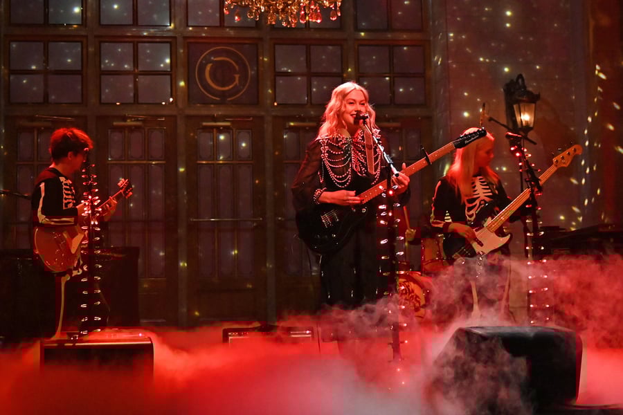 Phoebe Bridgers concluded her Saturday Night Live performance on February 6th by attempting to smash her guitar onstage — a fitting finale for an apocalyptically intense folk-rock song called “I Know the End.” There was Bridgers doing her very own London Calling, attempting to smash her Danelectro Dano ’56 baritone guitar to bits as fog surrounded her feet and the skeleton pearls on her dress chaotically swayed back and forth. She proved that destroying a guitar is a lot harder than it looks, as she continuously banged the instrument on an amplifier before tossing it to the ground largely intact. It was dramatic, unexpected, and awesome. So, naturally, the Internet got angry.