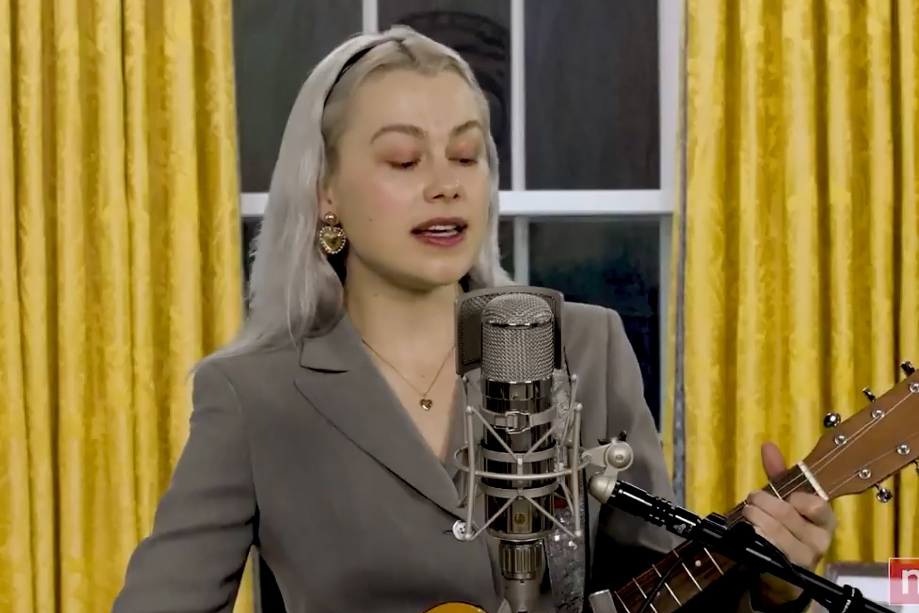 Standing in front of a mock-up of the Oval Office, the singer-songwriter delivered three tracks from Punisher