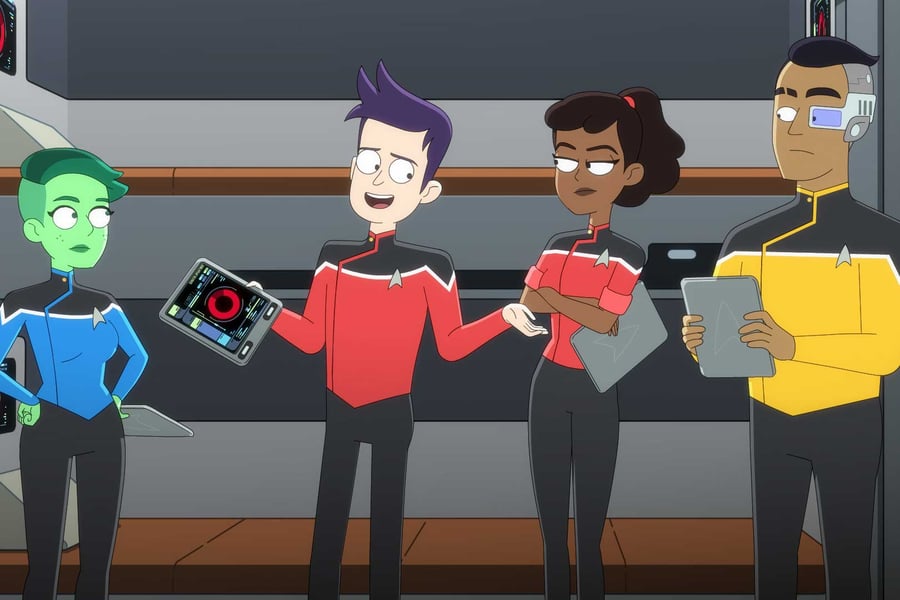 It may just be that the Rick and Morty style doesn’t work if Dan Harmon’s not involved. His creative absence was also felt in McMahan and Rick and Morty co-creator Justin Roiland’s recent Hulu comedy Solar Opposites, which, in the handful of episodes I saw, lacked both the cleverness and unexpected pathos of the pair’s work with Harmon. Maybe it’s that doing a workplace comedy in an obscure corner of a long-running and popular fictional universe is harder than it looks, as anyone who watched NBC’s short-lived DC Universe-set sitcom Powerless would recall. Or maybe it’s that the fundamental sincerity of Gene Roddenberry’s Star Trek vision can feel at odds with snarkier humor. (See also Seth MacFarlane’s The Orville, which is basically Next Generation fanfic with periodic jokes left over from the Family Guy writers room.)